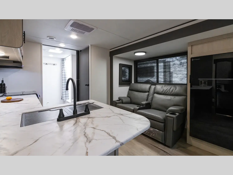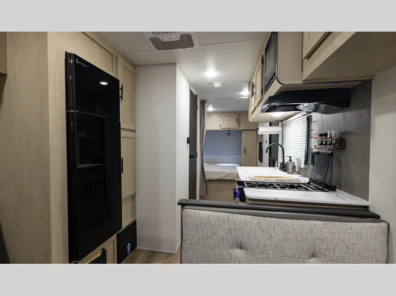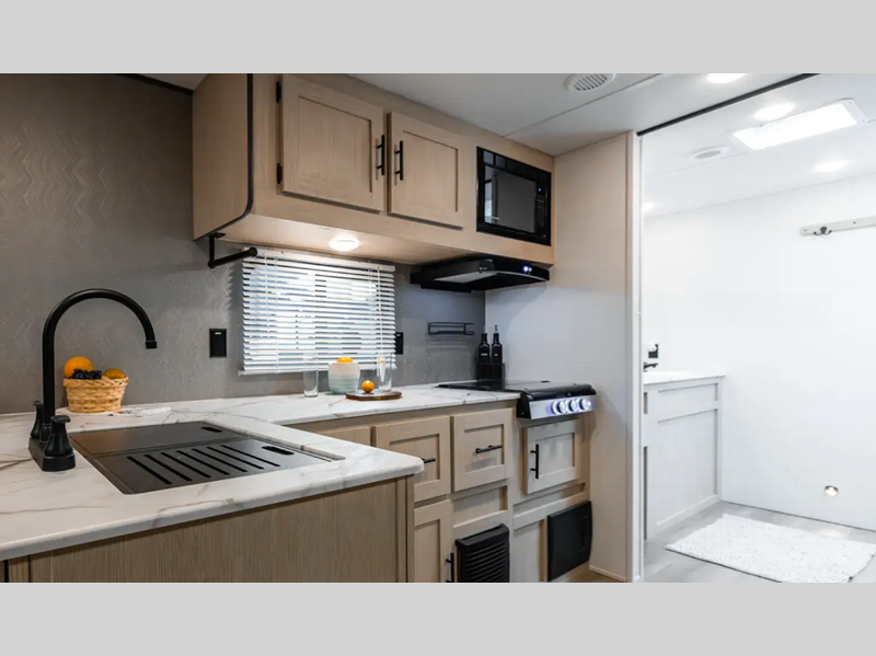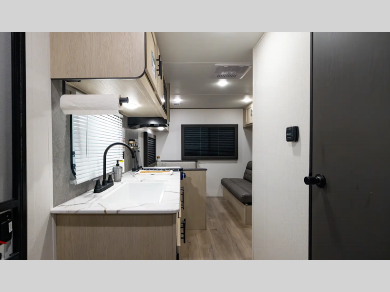 The enclosed underbelly will help protect against rock and debris as you travel to the campground, and the straight axle with electric breaks will help keep you unit secure. Inside, a tankless water heater will provide endless hot showers and pocket-bored and screwed cabinets will be useful for keeping everything organized. There are a few options that can be added to further customize your trailer, such as an optional power tongue jack and an optional 200W solar panel for off-grid capabilities.