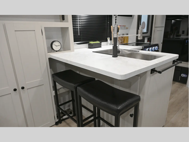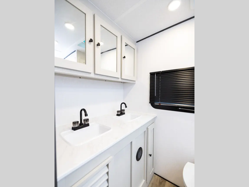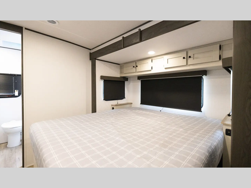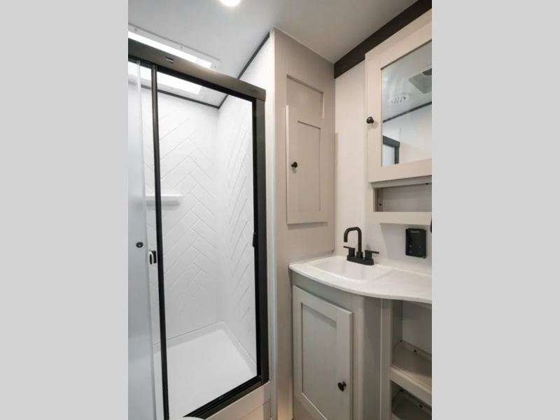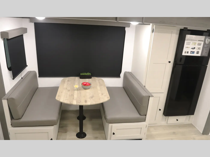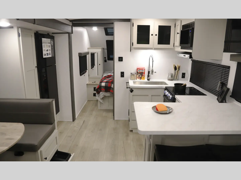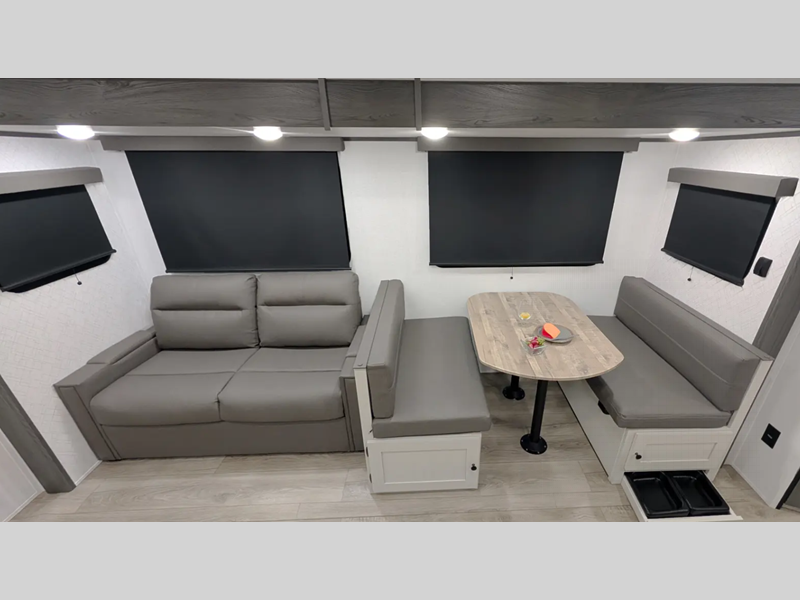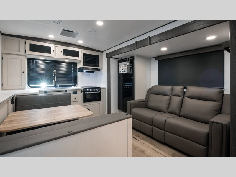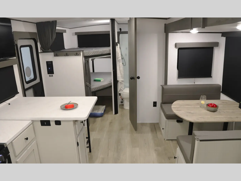 You'll find full bath and kitchen amenities in each model, along with comfortable seating and sleeping spaces. The Azdel composite panels provide durable construction and the heated and enclosed underbelly provides added protection against the elements. There is also convenient storage throughout for your valuables, camp gear, food, and more.