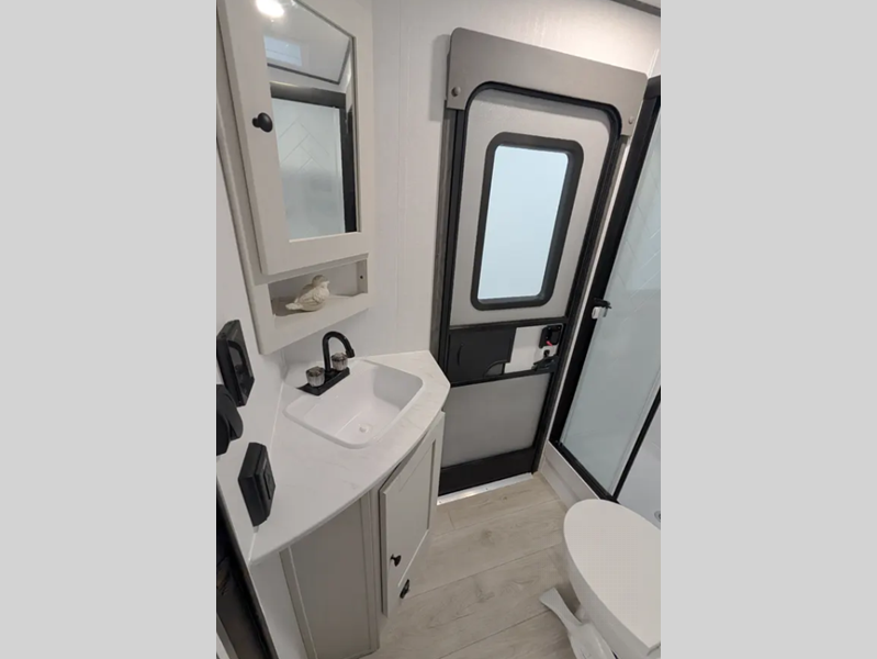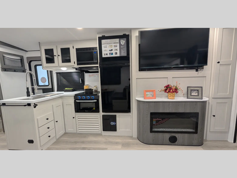 Sleeps 5 Slides 1 Length 33 ft 5 in Ext Width 8 ft Ext Height 11 ft 3 in Int Height 6 ft 11 in Hitch Weight 770 lbs GVWR 7600 lbs Dry Weight 6578 lbs Cargo Capacity 1022 lbs Fresh Water Capacity 50 gals Grey Water Capacity 70 gals Black Water Capacity 35 gals Furnace BTU 25000 btu Available Beds Queen Refrigerator Type 12V Refrigerator Size 10 cu ft Cooktop Burners 3 Shower Size 30" x 36" Number of Awnings 1 LP Tank Capacity 20 lbs Water Heater Type Tankless On Demand TV Info Smart TV Awning Info 20' Power w/LED Light Axle Count 2 Number of LP Tanks 1 Shower Type Standard Similar Floorplans