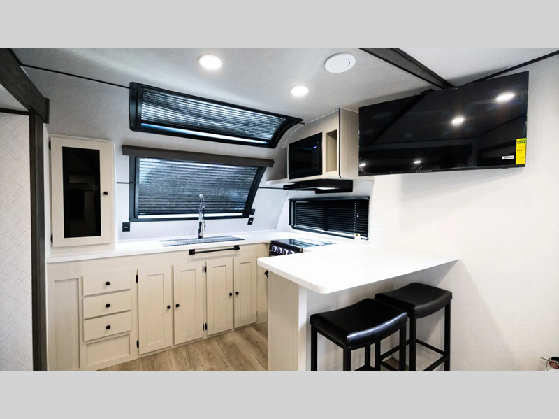 Sleeps 3 Slides 1 Length 24 ft Ext Width 8 ft Ext Height 11 ft 1 in Int Height 6 ft 11 in Hitch Weight 520 lbs GVWR 6500 lbs Dry Weight 4926 lbs Cargo Capacity 1574 lbs Fresh Water Capacity 50 gals Grey Water Capacity 35 gals Black Water Capacity 35 gals Available Beds Queen Refrigerator Type 12V Refrigerator Size 10 cu ft Cooktop Burners 3 Number of Awnings 1 LP Tank Capacity 20 lbs Water Heater Type Tankless On Demand TV Info Smart TV Awning Info 15' Power w/LED Light Axle Count 2 Number of LP Tanks 2 Shower Type Radius Similar Floorplans