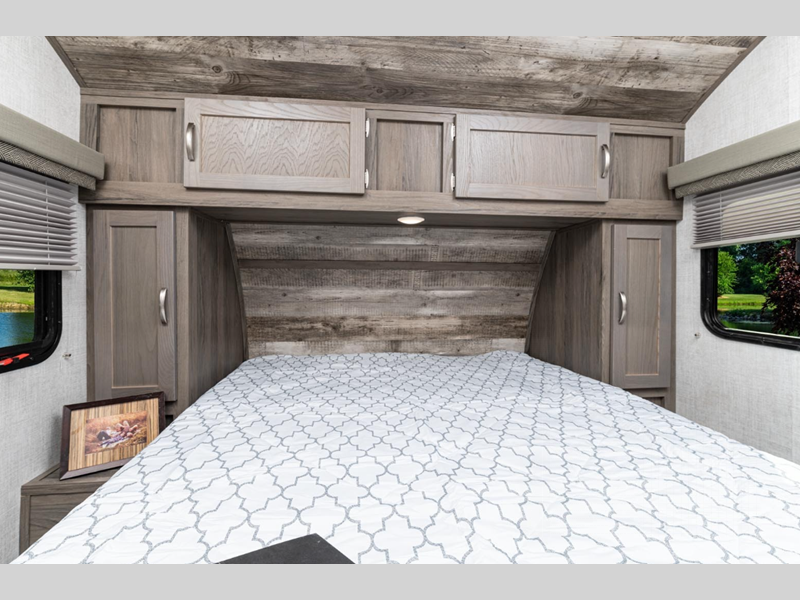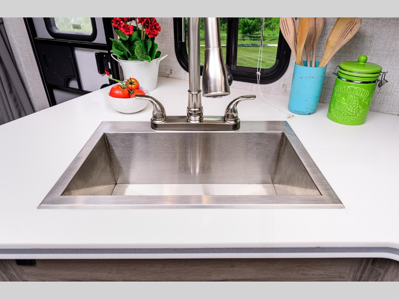 These trailers were made for those needing to tow with a smaller SUV or mini-van who want to take an occasional guest or two with them. Just because they are lightweight doesn't mean they lack in construction or features either. They are built with vacuum-bonded sidewalls with a composite layer for added durability plus wood cabinet doors and solid surface countertops for a more residential look. You will also appreciate the Vista Comfort Package that comes with a tankless water heater, power tongue jack, 100 watt solar panel, and so much more!
