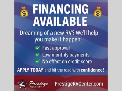 Prestige RV Center is not responsible for any misprints, typos, or errors found in our website pages. Any price listed excludes sales tax, registration tags, and delivery fees. Manufacturer-provided pictures, specifications and features may be used as needed. Inventory shown may be only a partial listing of the entire inventory. Please contact us at 800-229-1132 for availability as our inventory changes rapidly. All calculated payments are an estimate only and do not constitute a commitment that financing or a specific interest rate or term is available.